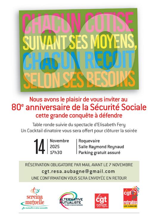 Nous avons le plaisir de vous inviter au 80ème anniversaire de la Sécurité Sociale, cette grande conquête à défendre.